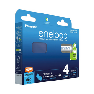 Introducing the Panasonic Eneloop AAA 800mAh + Travel Box Rechargeable Batteries - 4 Pack, your ultimate power solution for all your devices. Designed for efficiency and longevity, these batteries are perfect for powering everything from remote controls to digital cameras. With a capacity of 800mAh, you can enjoy the peace of mind that comes with knowing your devices will have the energy they need to perform at their best.