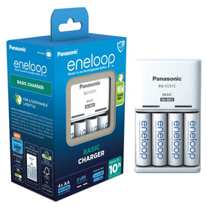 The Panasonic Eneloop Basic BQ-CC51E Charger + 4AA Rechargeable 2000mAh batteries is the perfect solution for eco-conscious consumers looking to reduce waste and save money. This dependable charger is designed to work seamlessly with the included four high-capacity AA rechargeable batteries, offering both performance and convenience.