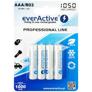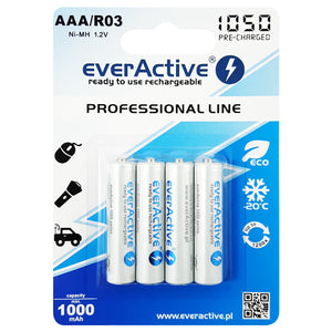 These versatile batteries are essential for a variety of applications. From powering household gadgets to supporting outdoor equipment, everActive Professional Line AAA 1000mAh Rechargeable Batteries - 4 Pack are your go-to solution for maintaining energy efficiency and convenience.