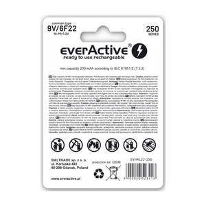 Discover the power and reliability of everActive Silver Line 9V 200mAh B1 Rechargeable Batteries. Designed for performance, these batteries are perfect for a range of devices, from smoke detectors to remote controls, ensuring that you never run out of power when you need it most. With a capacity of 200mAh, these rechargeable batteries provide long-lasting energy, making them an excellent choice for eco-conscious consumers looking to reduce waste.